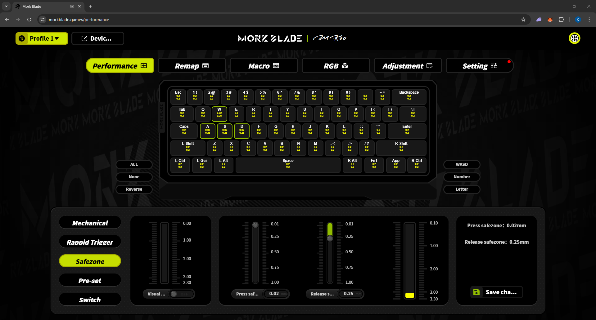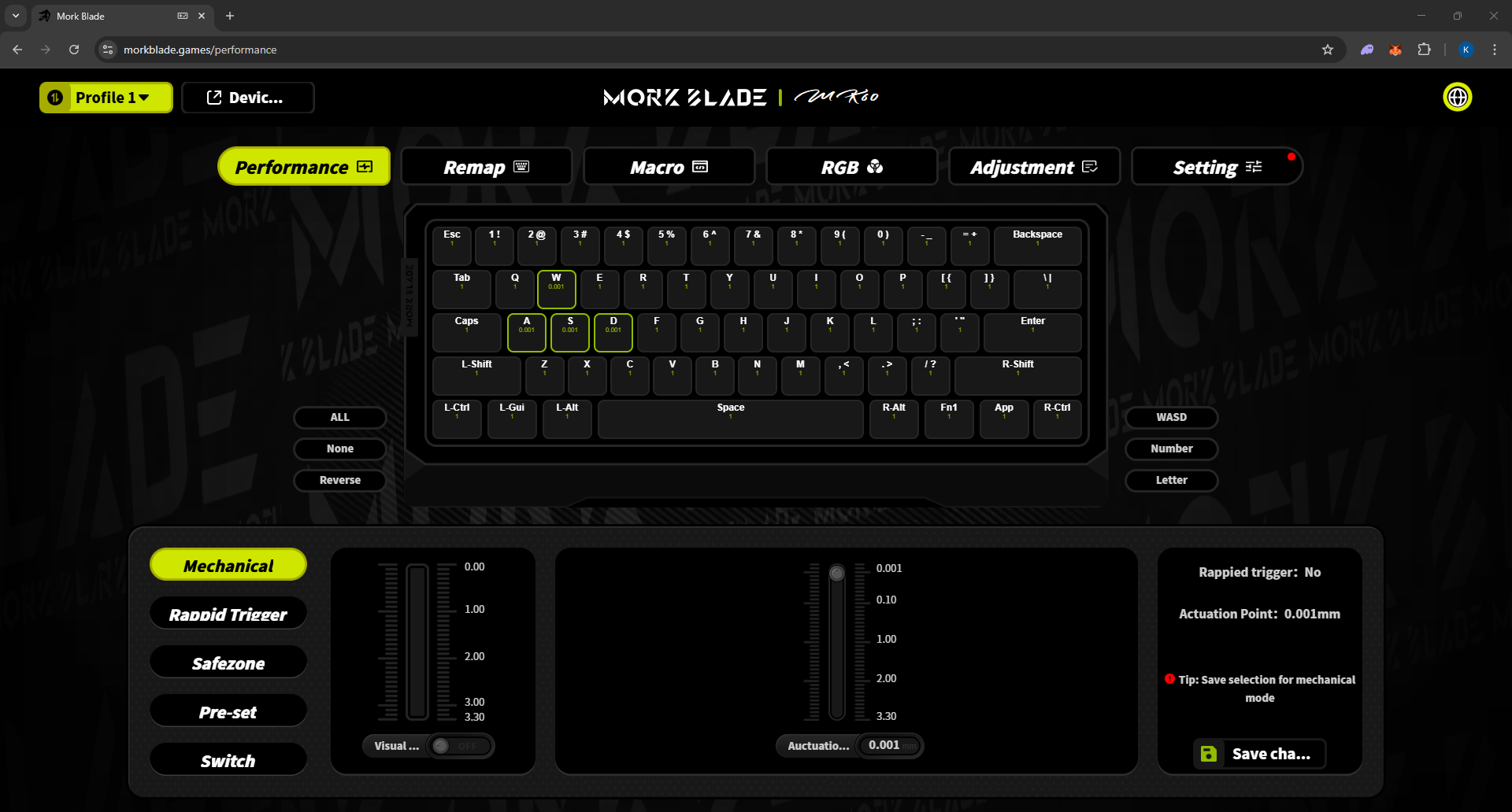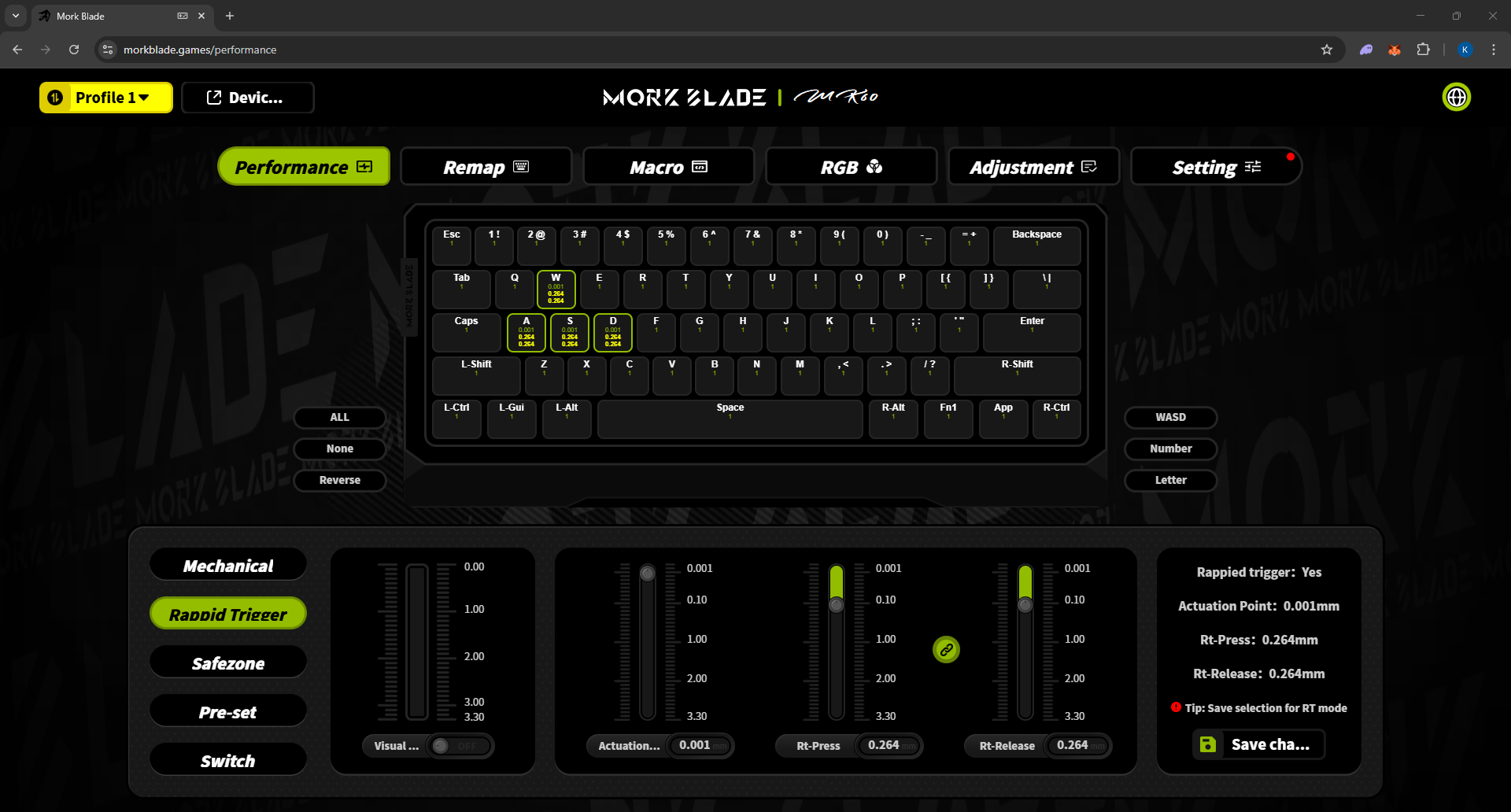 Acutuation Point. Rapid Trigger, DKS (Dynamic Keystroke), Safe Zone, SOCD / Snappy Tappy, TGL, -